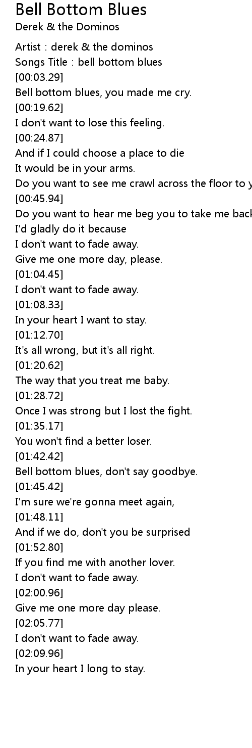 | [00:16.37] | Bell bottom blues, you made me cry. |