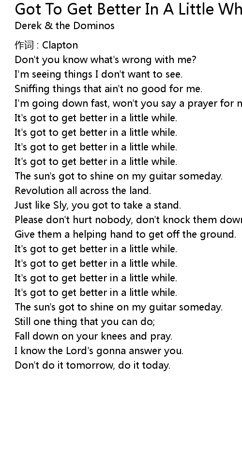 | Song | Got To Get Better In A Little While |