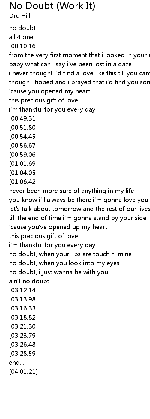 | [02:05.42][01:06.42] | ain't no doubt about it |