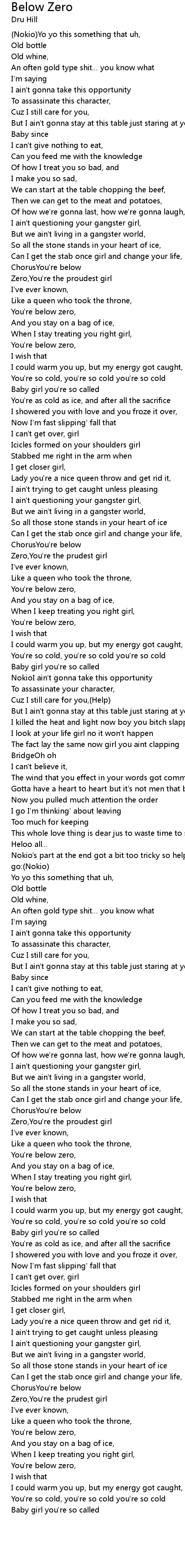 | Song | Below Zero |