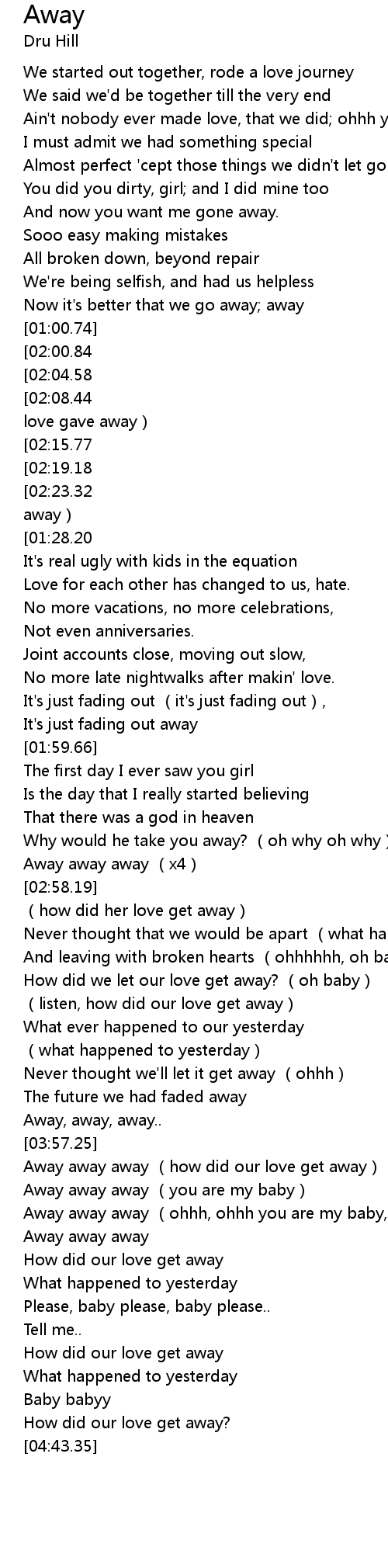| [03:58.32] | Away away away (how did our love get away) |