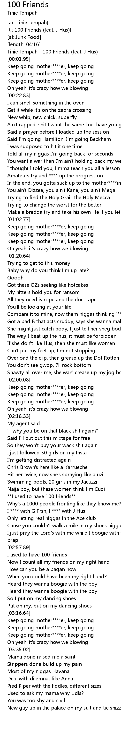 [ti: 100 Friends (feat. J Hus)] |