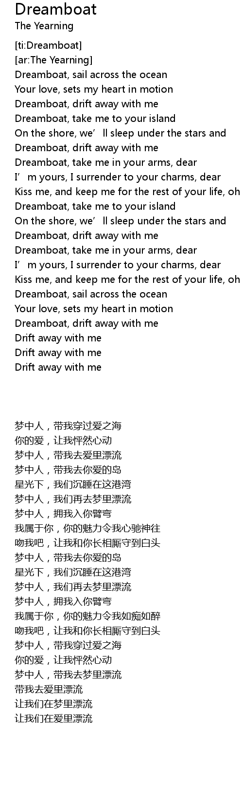 | [00:23.66] | Dreamboat, sail across the ocean |