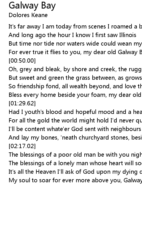 And lay my bones, 'neath churchyard stones, beside you, Galway Bay |
