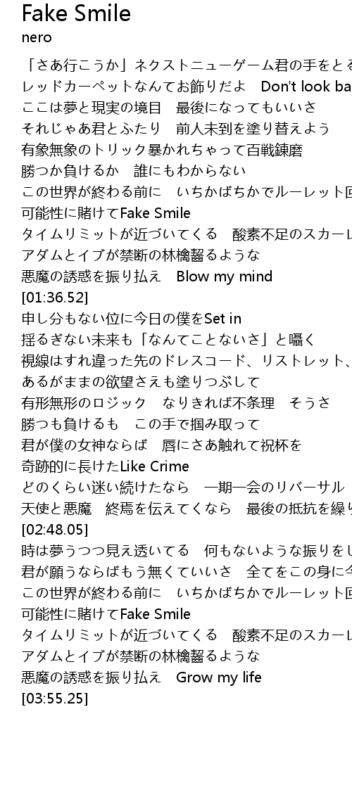 | [01:12.33] | kě néng xìng dǔ Fake Smile |