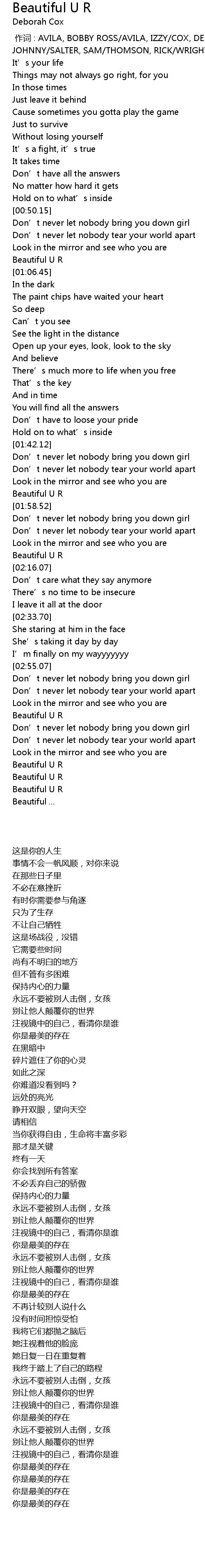 | [02:12.03] | Beautiful U R |