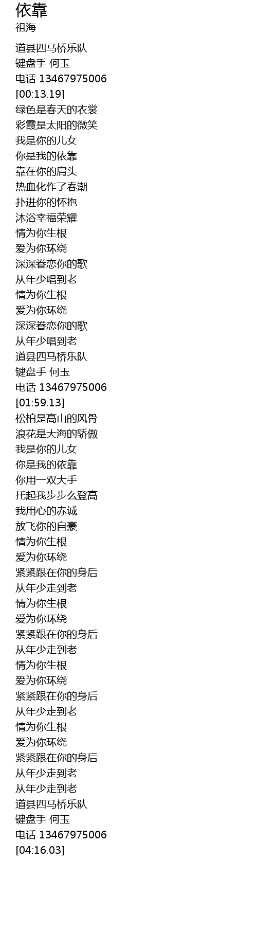 | [00:42.20] | nǐ shì wǒ de yī kào |