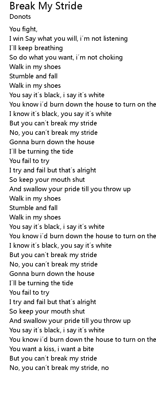 | But you can t break my stride | |