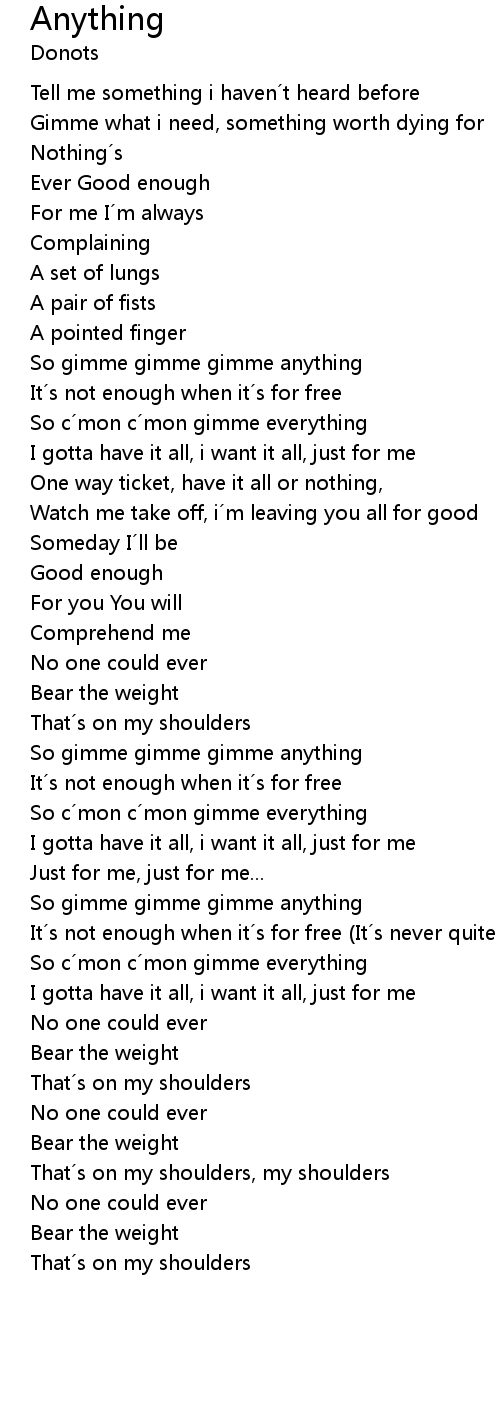 | So gimme gimme gimme anything | |