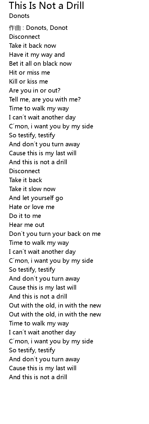 | Song | This Is Not a Drill |