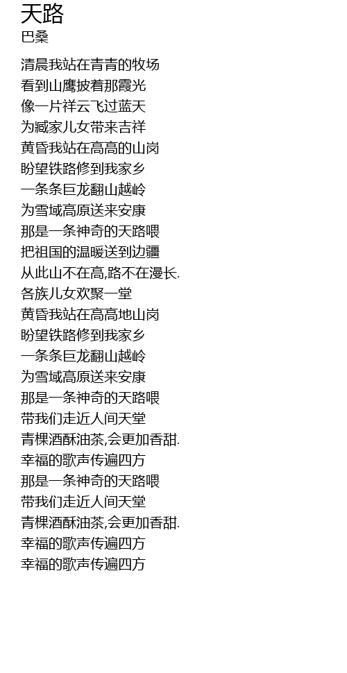 | [03:29.050] | 那是一条神奇的天路喂 |