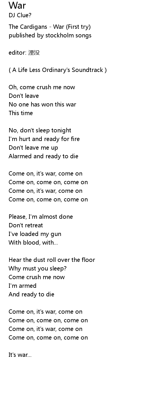 | Come on, it's war, come on | |