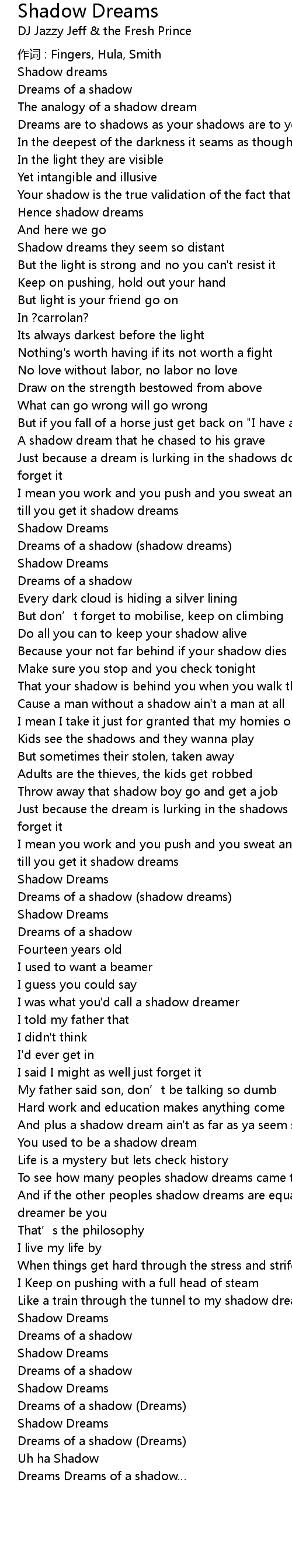 | And plus a shadow dream ain' t as far as ya seem son | |