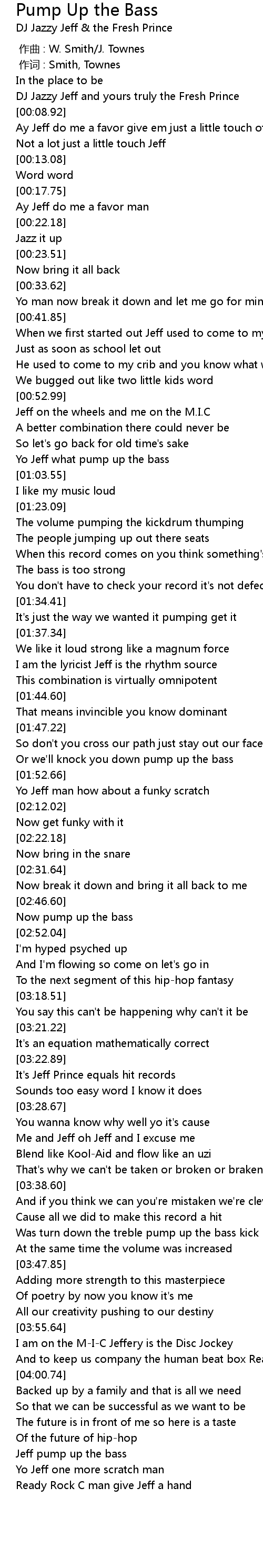 | [01:00.49] | Yo Jeff what pump up the bass |