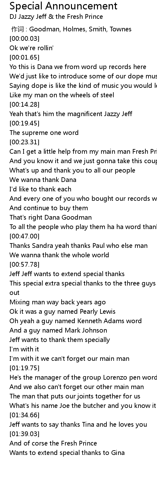 | [00:15.09] | Yeah that's him the magnificent Jazzy Jeff |