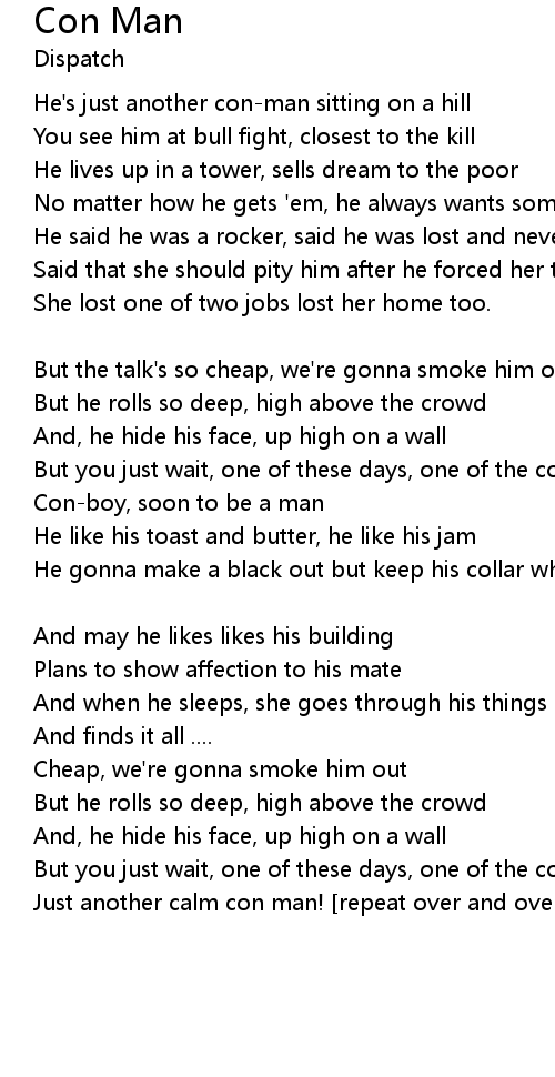 | But you just wait, one of these days, one of the con-men is gonna fall | |