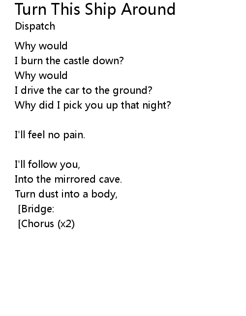 | Turn this ship around. [x3] [Chorus (x2)] |
