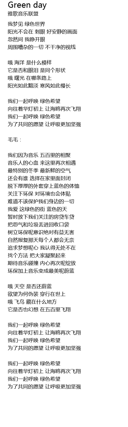 | wǒ men yì qǐ hū huàn lǜ sè xī wàng | |