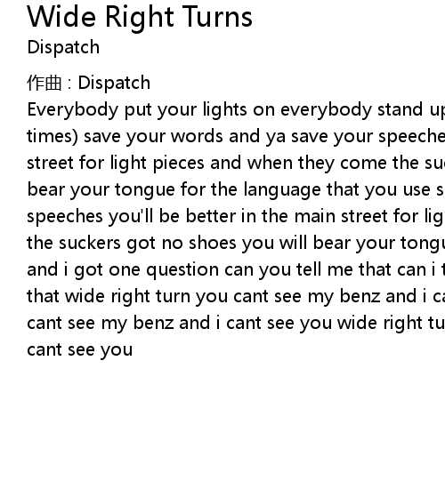 | Song | Wide Right Turns |