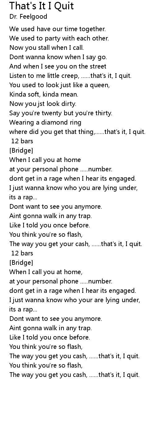 The way you get your cash, ......that's it, I quit. |