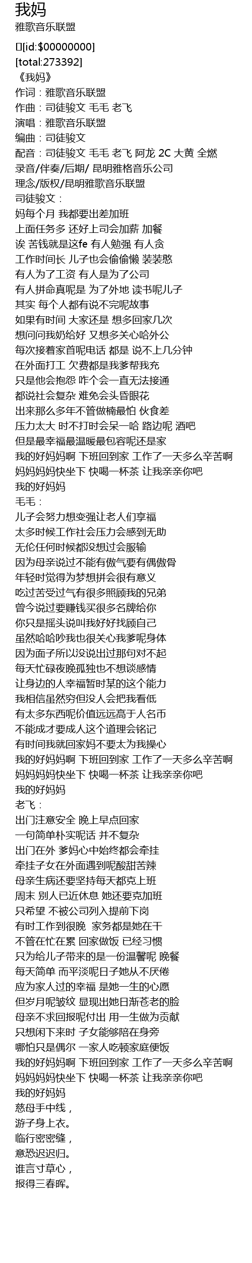 | [00:02.578] | 《我妈》 |