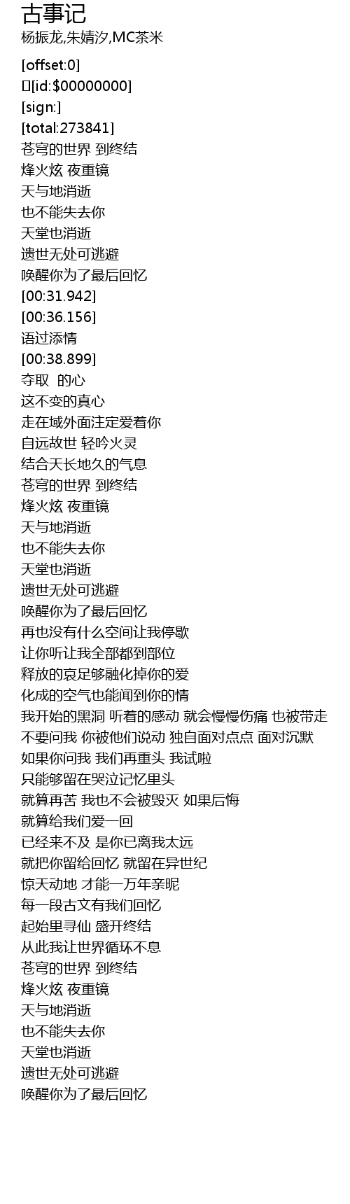 | [00:01.371] | cāng qióng de shì jiè dào zhōng jié |