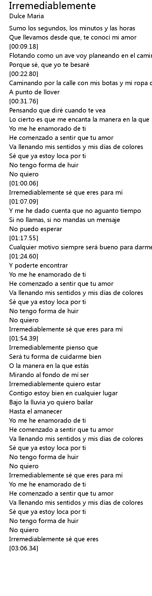 | [02:41.60] | Irremediablemente sé que eres para mí |