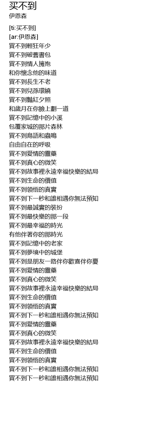 | [00:56.40] | 買不到鳥語和蟲鳴 |
