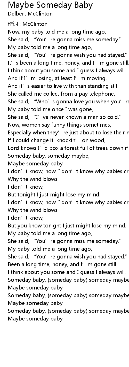 | Someday baby, someday baby someday maybe, someday maybe | |