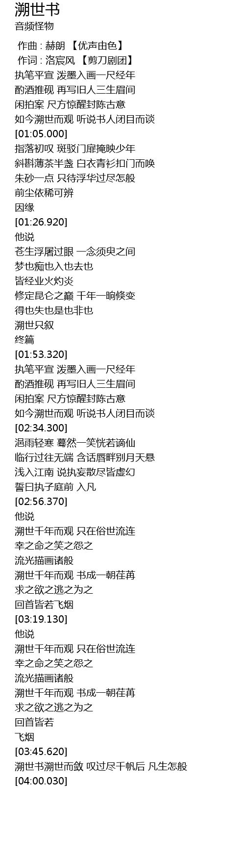 | [03:51.000] | 溯世书溯世而敛 叹过尽千帆后 凡生怎般 |