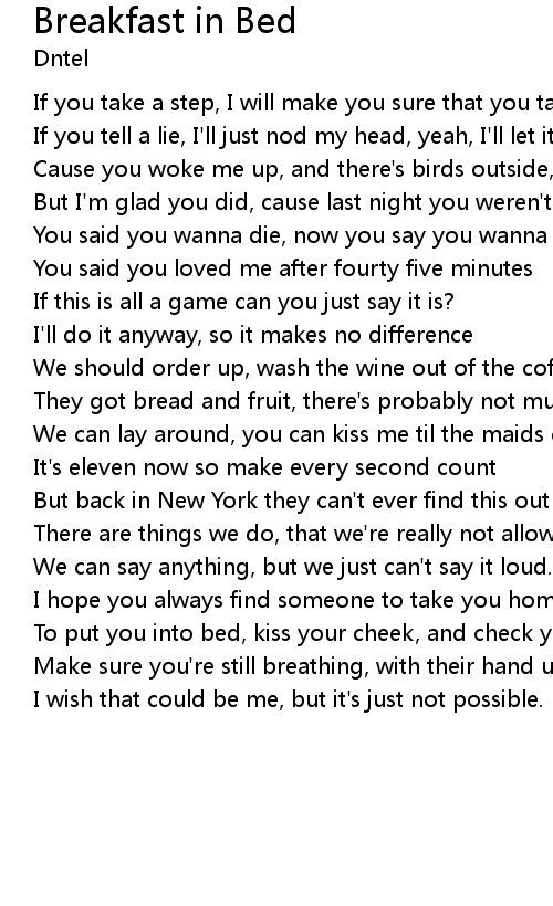 | We can lay around, you can kiss me til the maids come kick us out. | |
