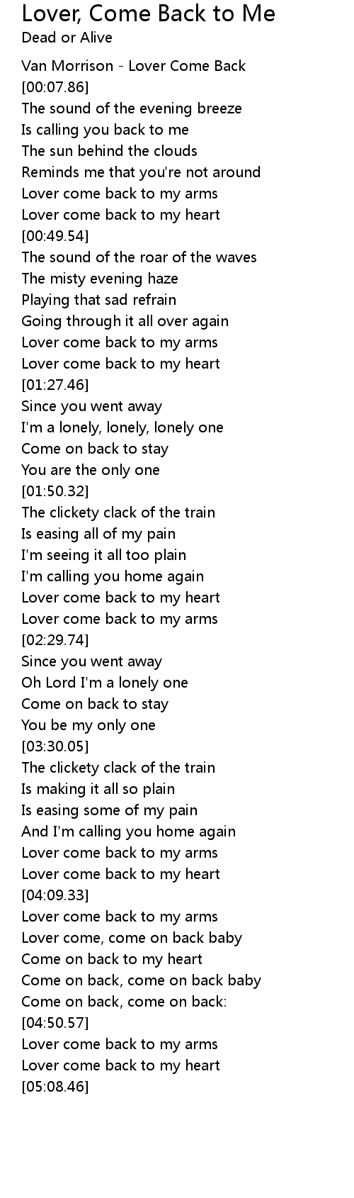 Lover come back to my arms |