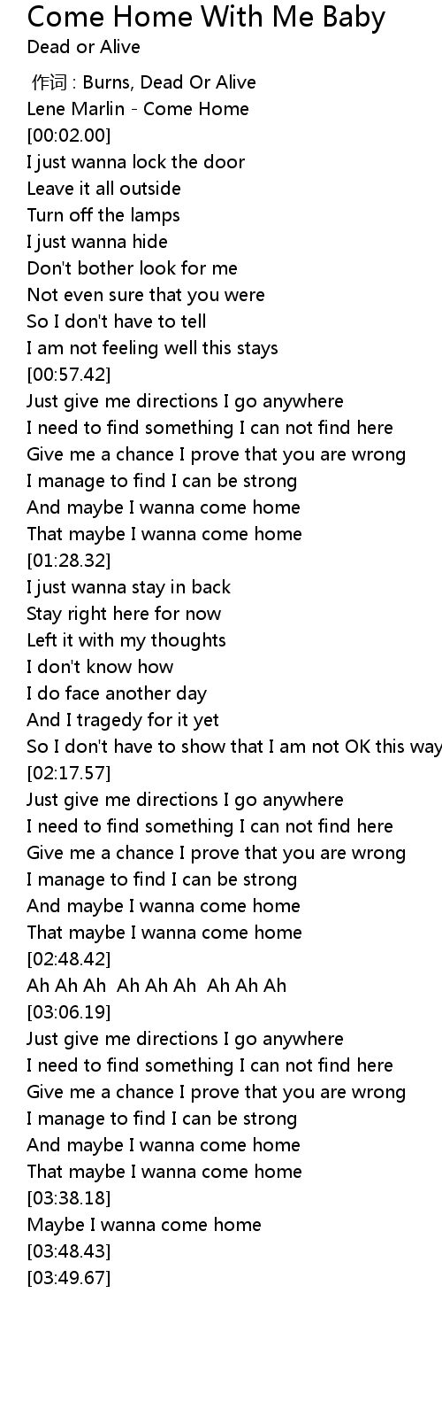 | [02:43.38] | That maybe I wanna come home |