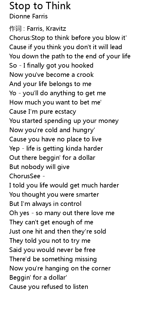 | Chorus:Stop to think before you blow it' | |