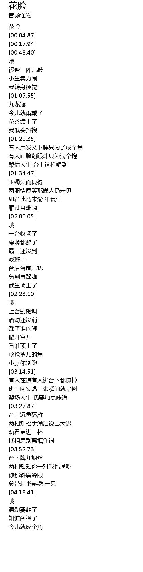 | [01:25.53] | yǒu rén huà liǎn fān gēn dǒu zhǐ wèi hùn gè bǎo |