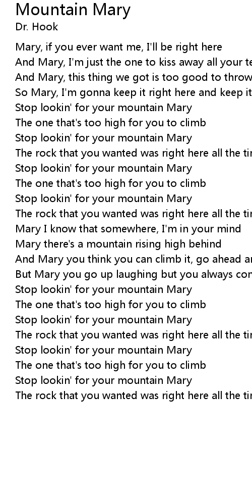 Stop lookin' for your mountain Mary |