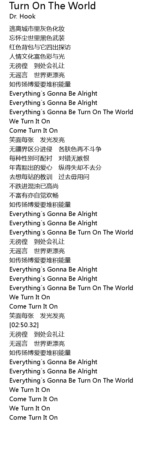 | [02:04.14] | Everything s Gonna Be Turn On The World |