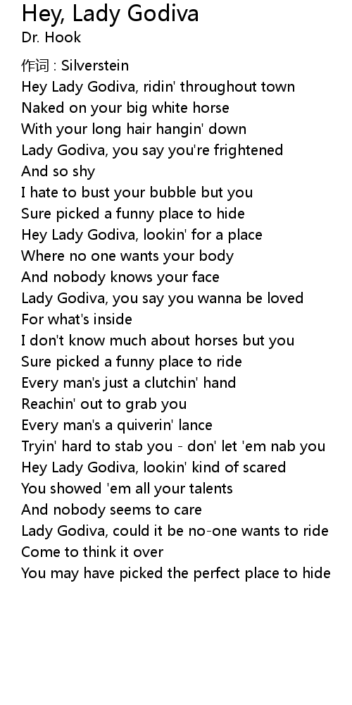 | Hey Lady Godiva, ridin' throughout town | |