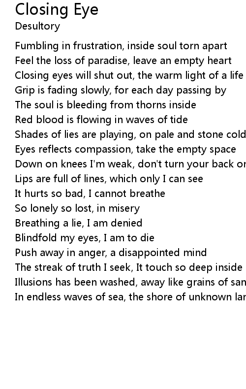 Closing eyes will shut out, the warm light of a life |
