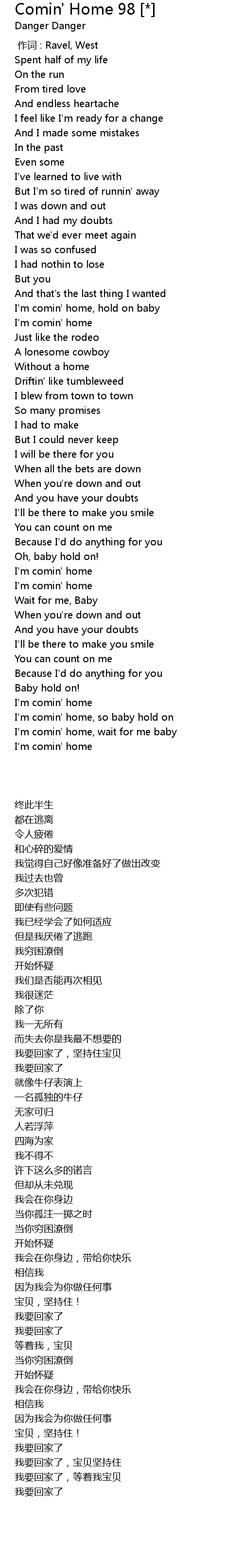 | [03:42.55] | I' m comin' home, wait for me baby |