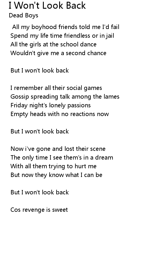 But I won't look back |