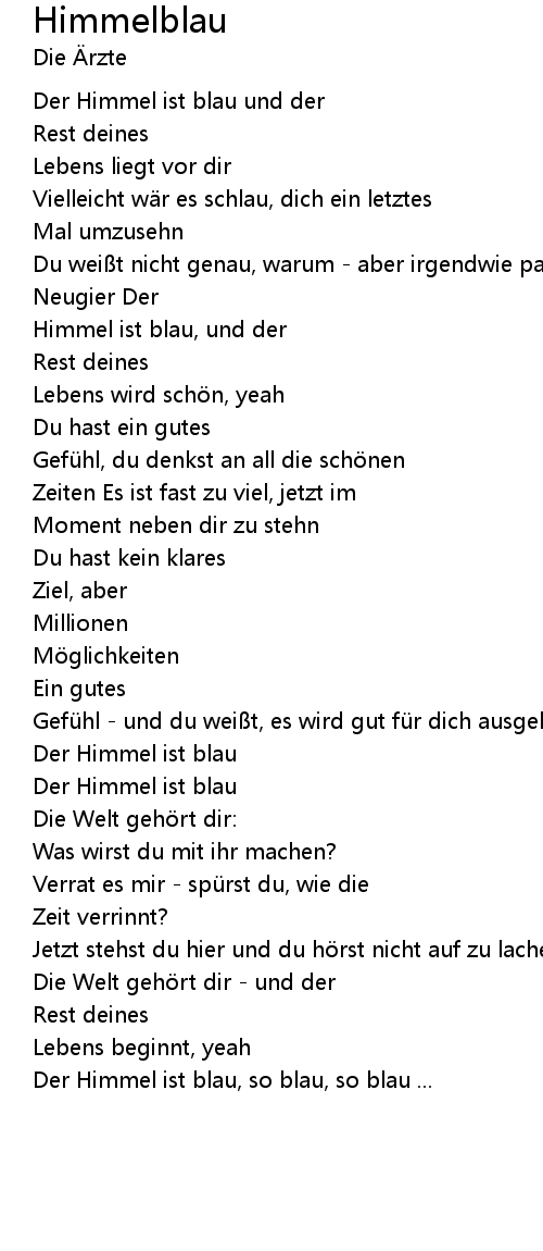 | Himmel ist blau, und der | |