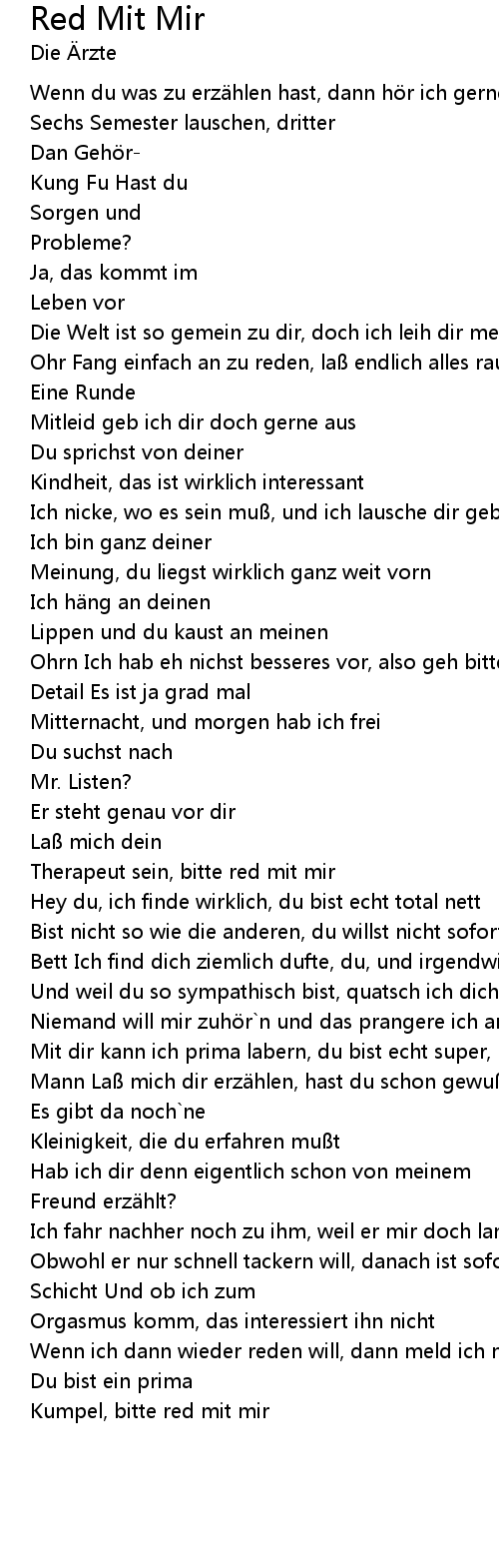 | Wenn du was zu erzählen hast, dann hör ich gerne zu | |