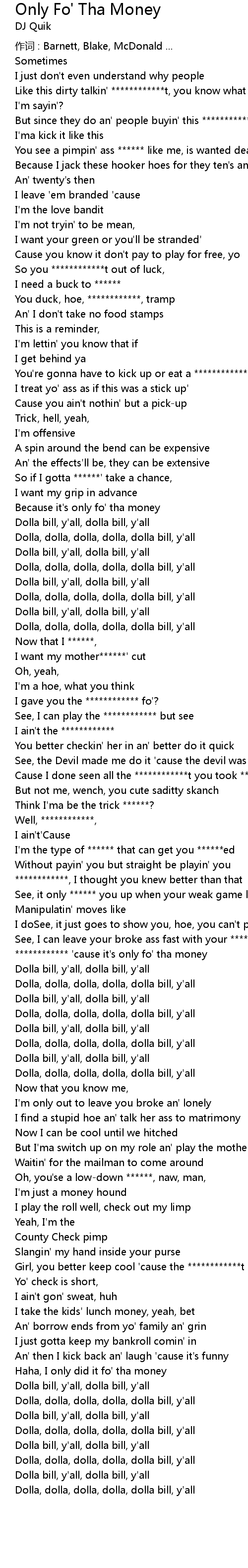 | ************ 'cause it's only fo' tha money | |