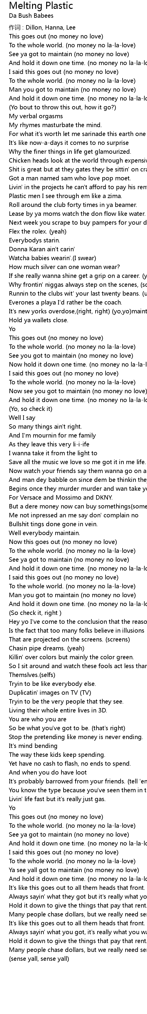 | Runnin to the clubs wit' your last twenty beans. uh | |