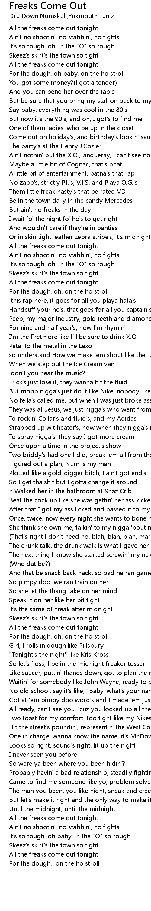 | [00:54.10] | But ain't no freaks in the day |