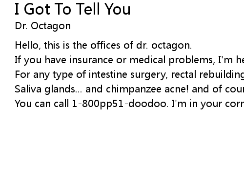 | You can call 1-800pp51-doodoo. I'm in your corner." |