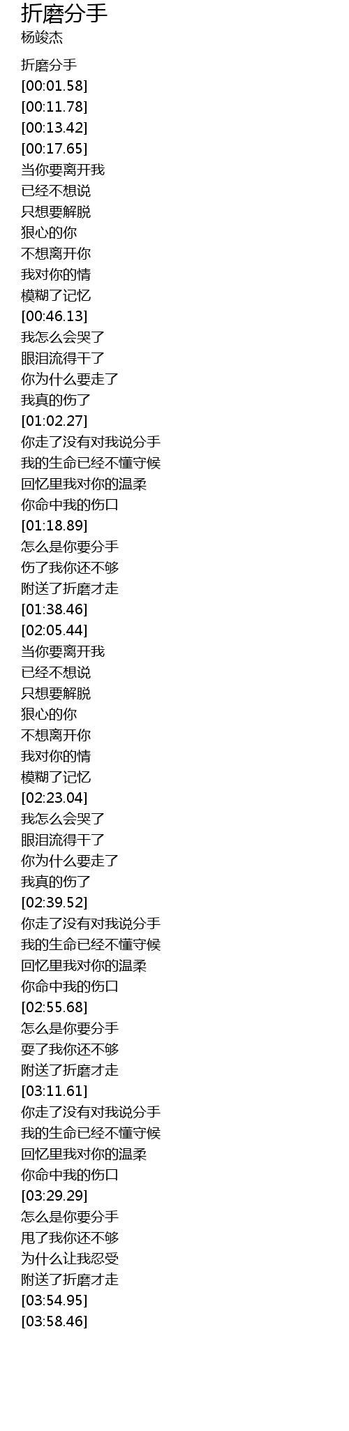 | [02:56.26] | zěn me shì nǐ yào fēn shǒu |