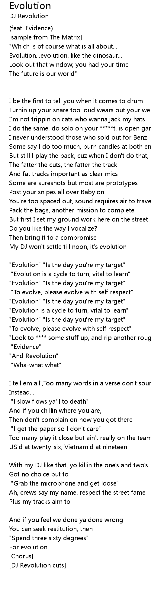 "Evolution" "Is the day you're my target" [cut up and repeated x3] |
