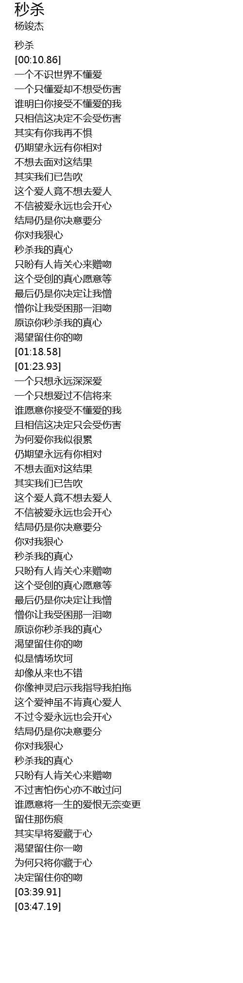 | [03:00.18] | 秒杀我的真心 |